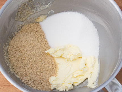 Using an electric mixer or in the bowl of a stand mixer fitted with the paddle attachment beat the butter, Redpath® Granulated Sugar and Redpath® Golden Yellow Sugar on medium speed until pale and fluffy, 4 minutes.